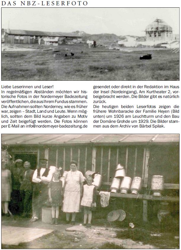 Die heutigen beiden Leserfotos zeigen die frühere Wohnbaracke der Familie Heyen (Bild unten) um 1926 am Leuchtturm und den Bau der Domäne Grohde um 1929. Die Bilder stammen aus dem Archiv von Bärbel Spilak.