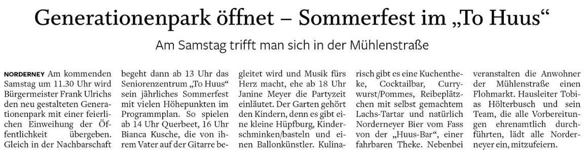 Mit einer feierlichen Einweihung wird der Generationenpark am Seniorenzentrum "To Huus"