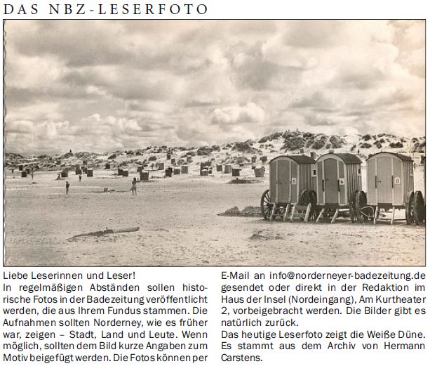 Das heutige Leserfoto zeigt die Weiße Düne. Es stammt aus dem Archiv von Hermann Carstens.