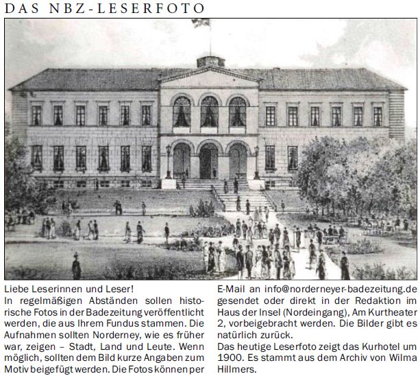 Das heutige Leserfoto zeigt das Kurhotel um 1900. Es stammt aus dem Archiv von Wilma Hillmers.